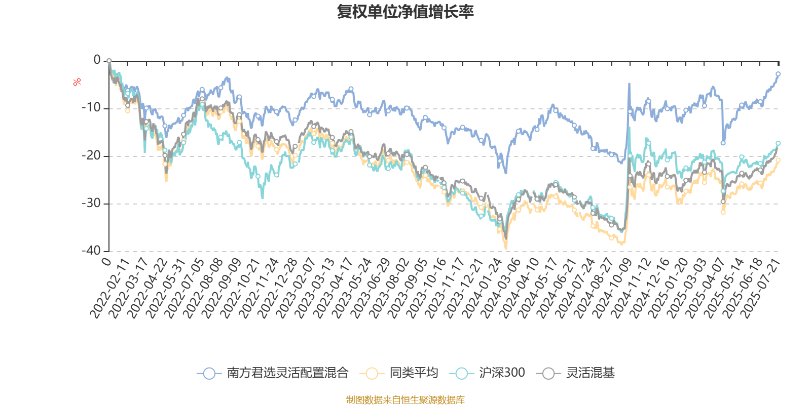 截至7月21日,南方君选灵活配置混合近三个月复权单位净值增长率为11.52%,位于同类可比基金291/880;近半年复权单位净值增长率为8.07%,位于同类可比基金426/880;近一年复权单位净值增长率为15.67%,位于同类可比基金444/880;近三年复权单位净值增长率为4.03%,位于同类可比基金208/871。