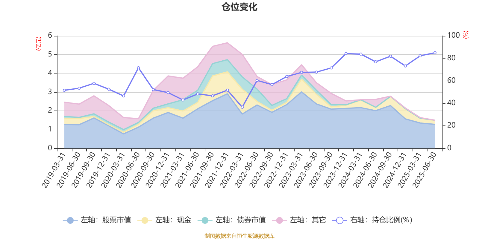 据定期报告数据统计,近三年平均股票仓位为74.54%,同类平均为80.43%。2025年上半年末基金达到84.95%的最高仓位,2022年一季度末最低,为36.57%。